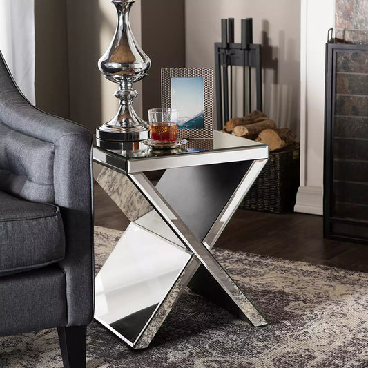 Luxurious Mirrored X-Base Side Table – Modern Glam Accent