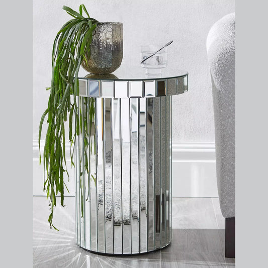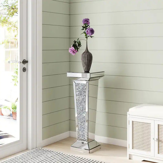 Mirrored Crushed Diamond Tall End Table – Elegant Display Stand