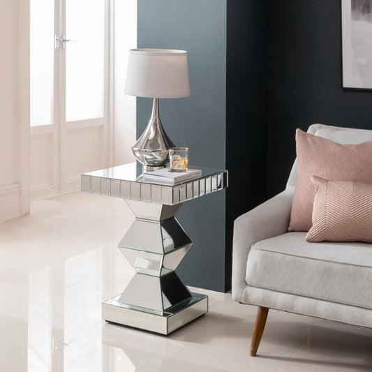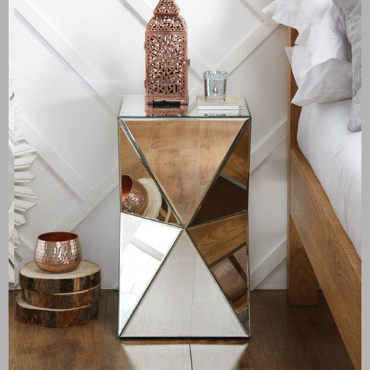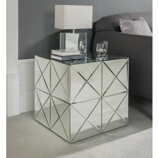Geometric Mirrored Side Table – Elegant & Modern Accent Piece