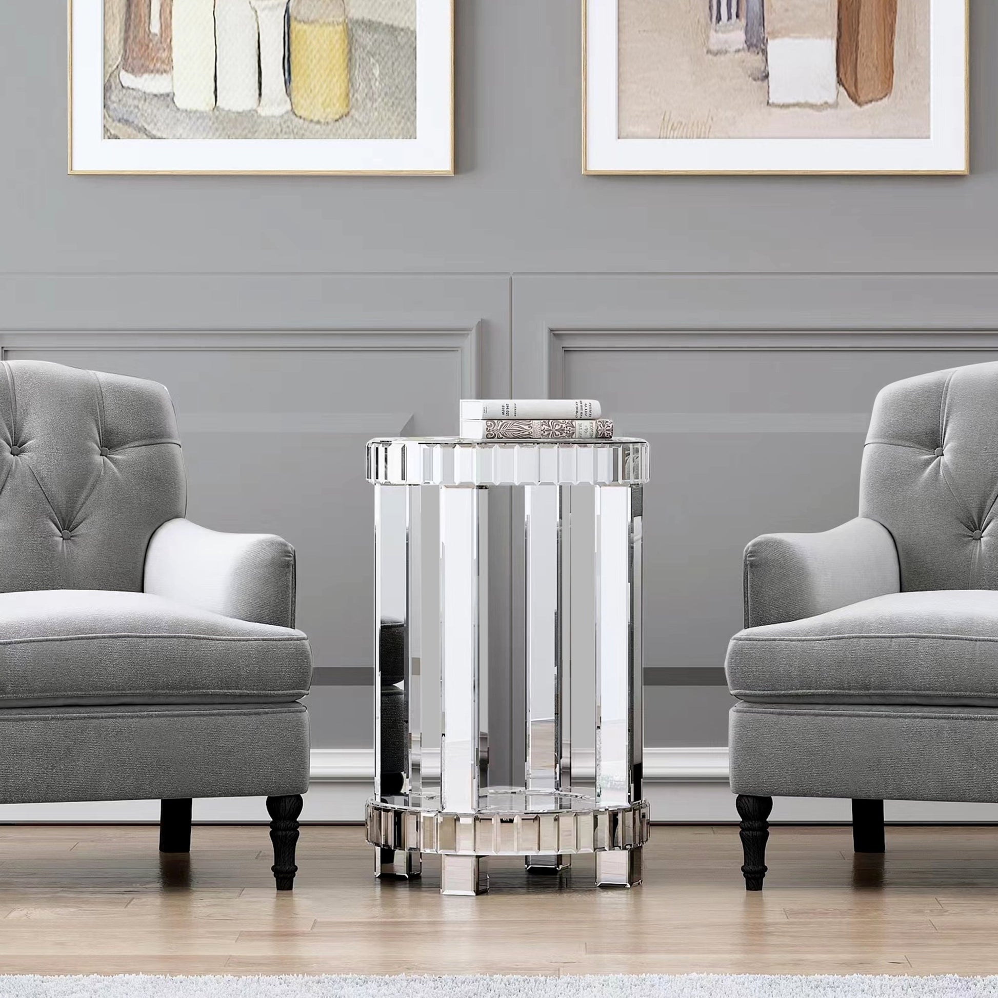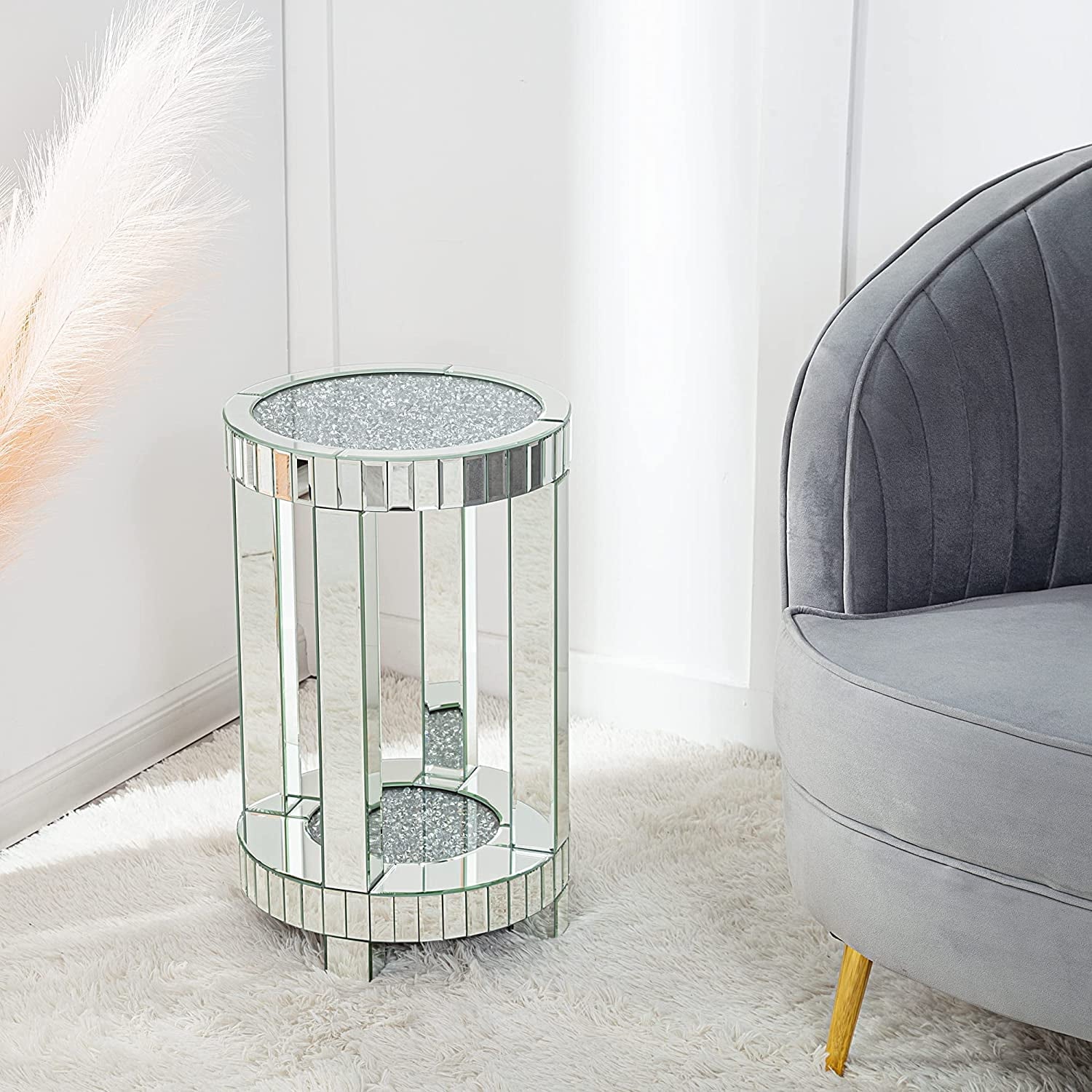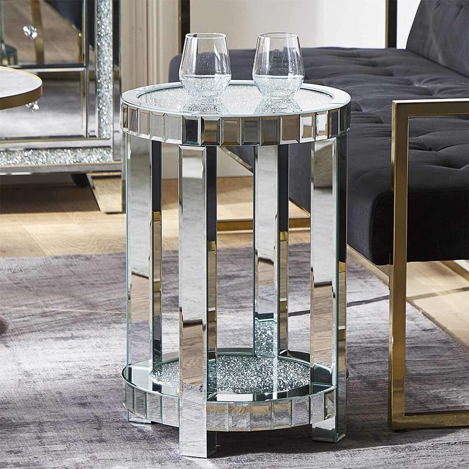 Luxe Crystal Mirrored Round Side Table – Elegant Accent Piece