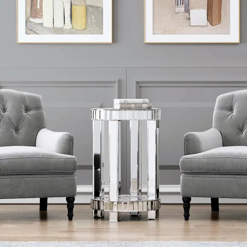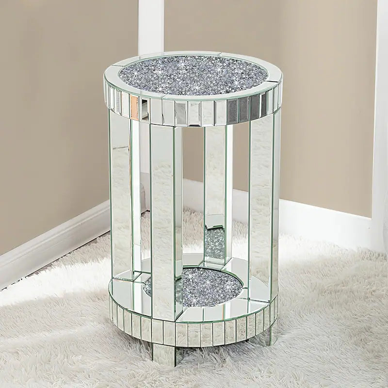 Round Mirrored Side Table with Crystal Inlay – Luxury Accent Piece