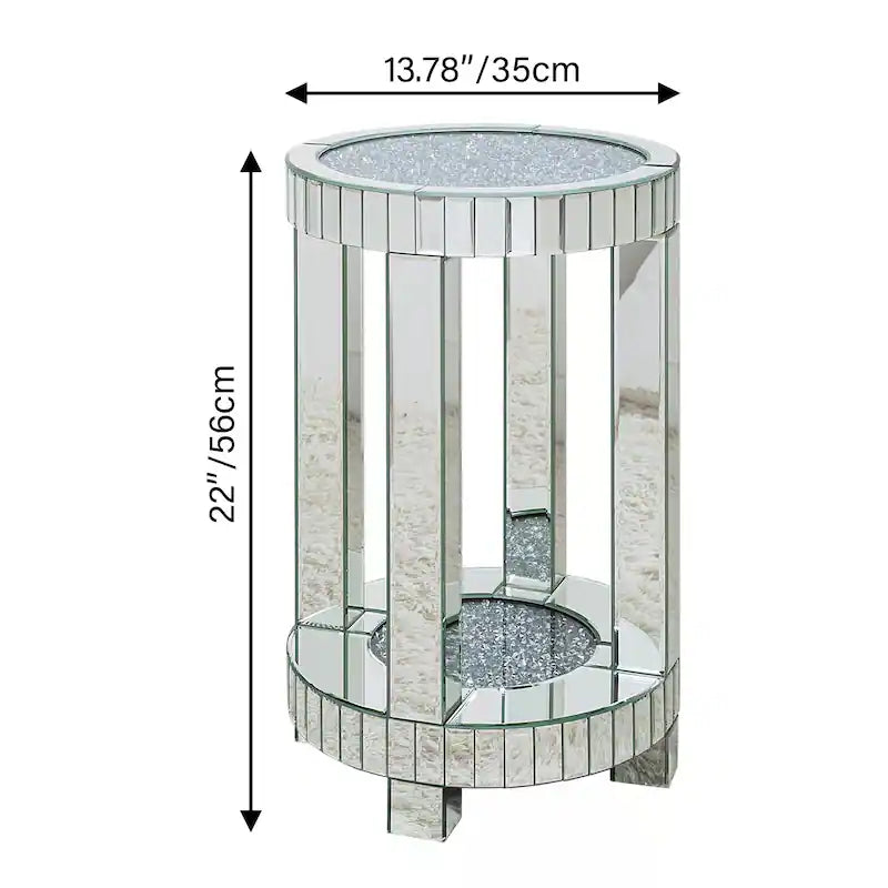 Upgrade your space with this stunning round mirrored side table, designed to add a touch of elegance and sophistication to any room. Featuring a dazzling crystal inlay, sleek mirrored panels, and a sturdy yet stylish structure, this table is perfect for modern and contemporary interiors.