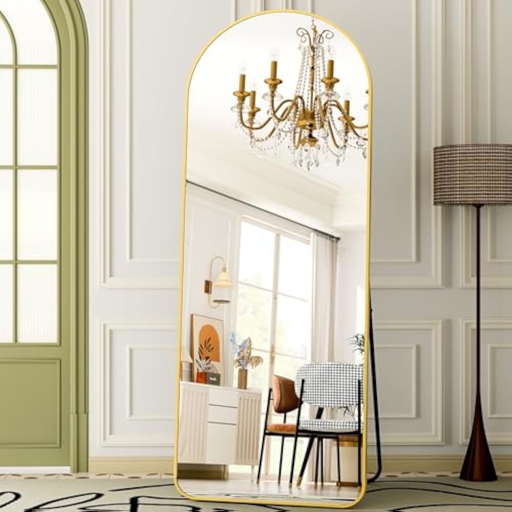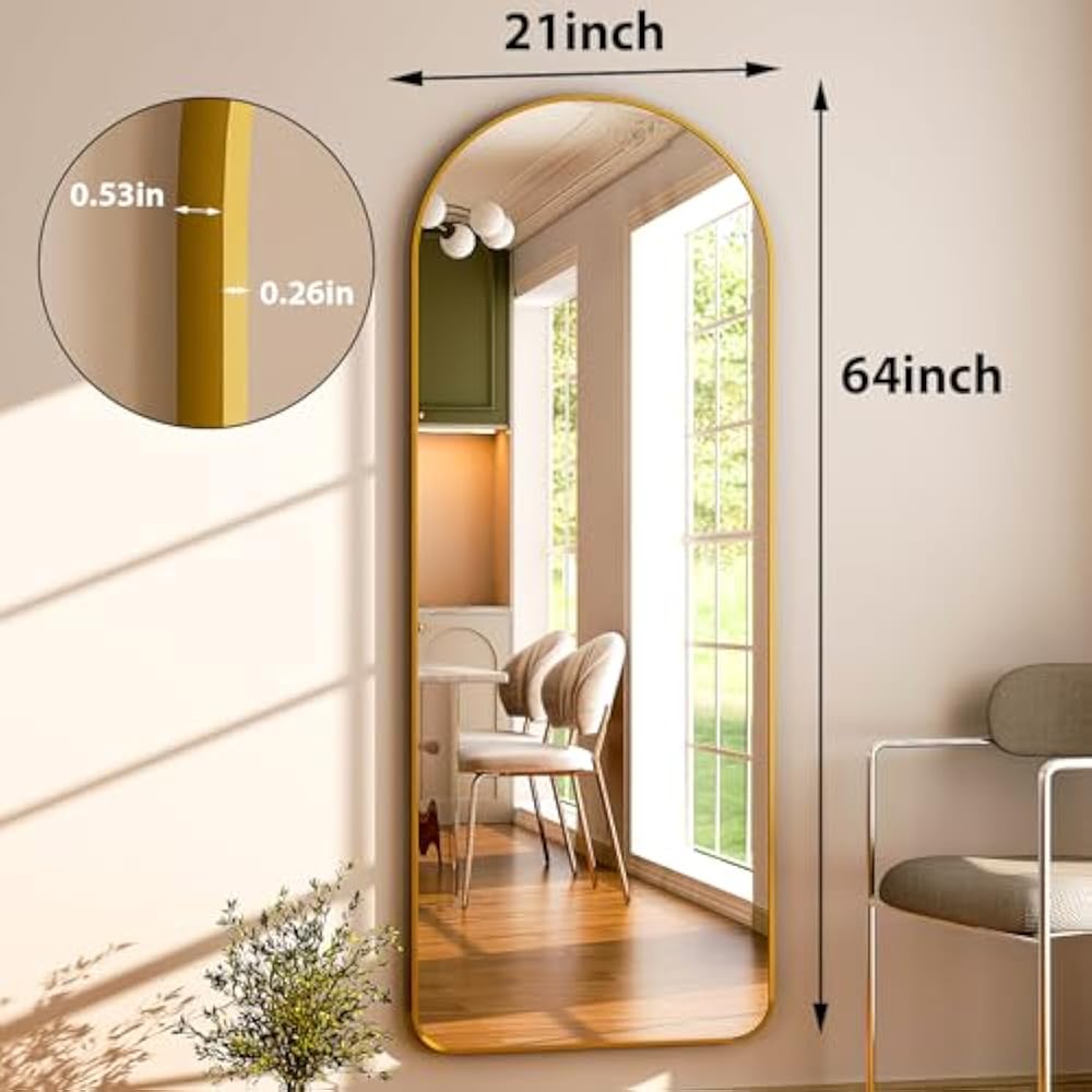 Enhance your home décor with this elegantly designed arch full-length mirror, measuring 5.5 feet in height and 2 feet in width. Featuring a sleek arched frame, a sturdy stand, and convenient hooks for added functionality, this mirror is perfect for any space. Ideal for bedrooms, dressing areas, hallways, or living rooms, it combines modern aesthetics with practical design.