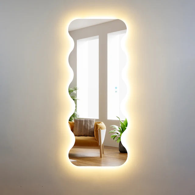 Add a modern and functional touch to your home with this LED full-length abstract mirror, designed to elevate your space while providing ample illumination. This stylish mirror features 3 built-in LED lights, offering a soft, ambient glow that can be easily controlled with a touch sensor for effortless operation. Its abstract shape adds a contemporary, artistic flair, making it a perfect statement piece for your bedroom, dressing room, hallway, or living area.
