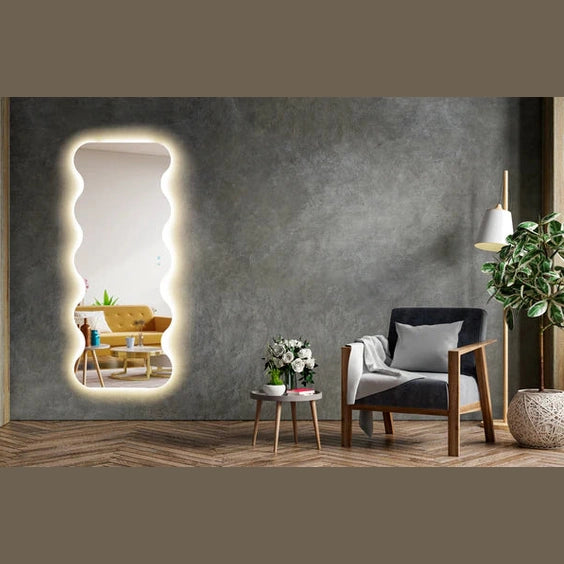 LED Full-Length Abstract Mirror – Modern Touch Sensor Design for Stylish Interiors