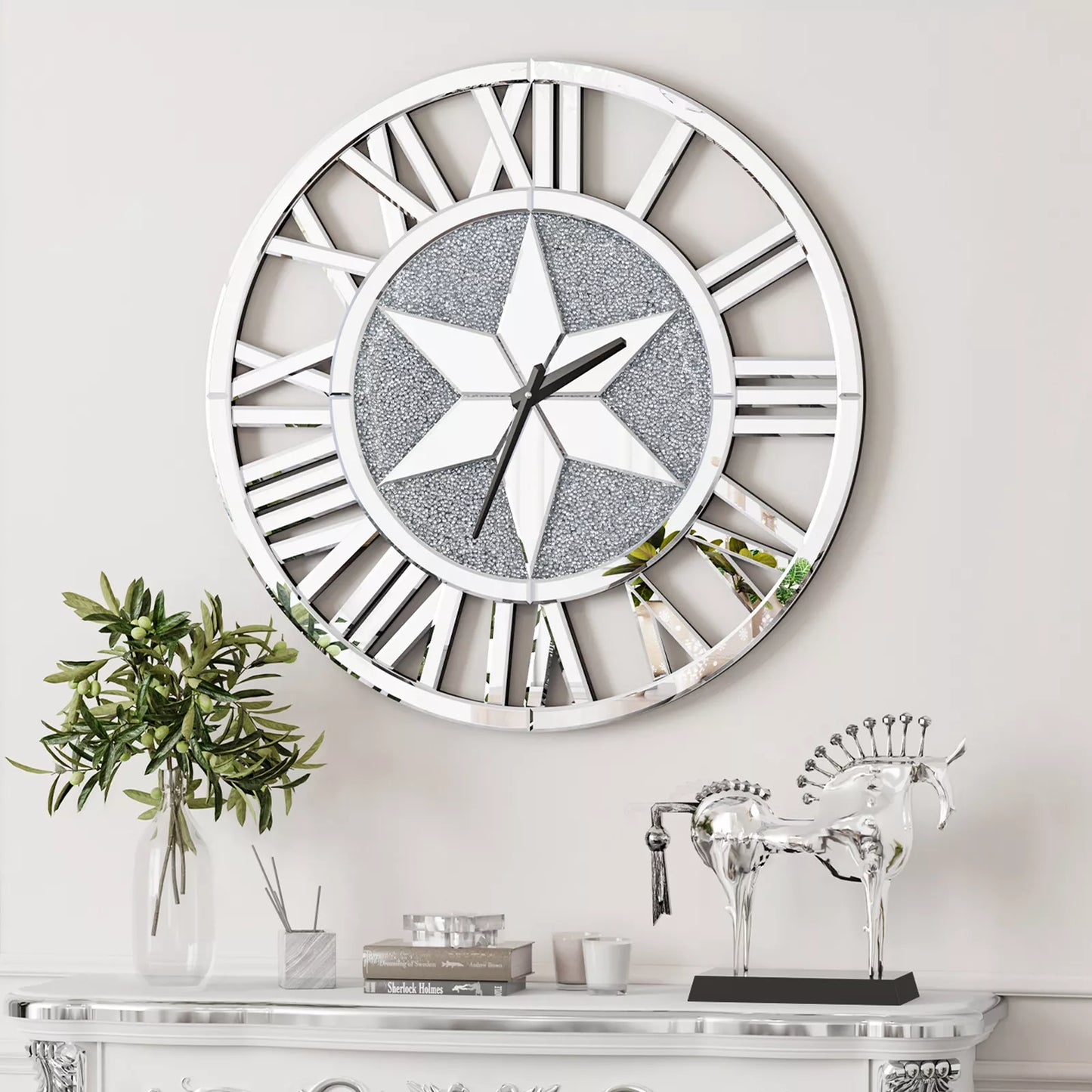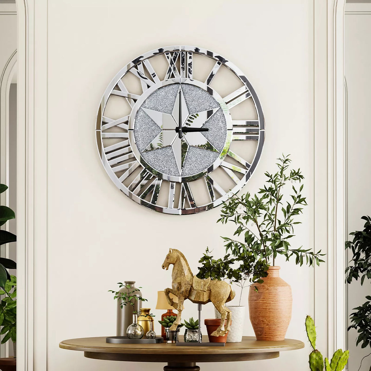 Luxury Crystal Star Mirrored Wall Clock – A Stunning Statement Piece