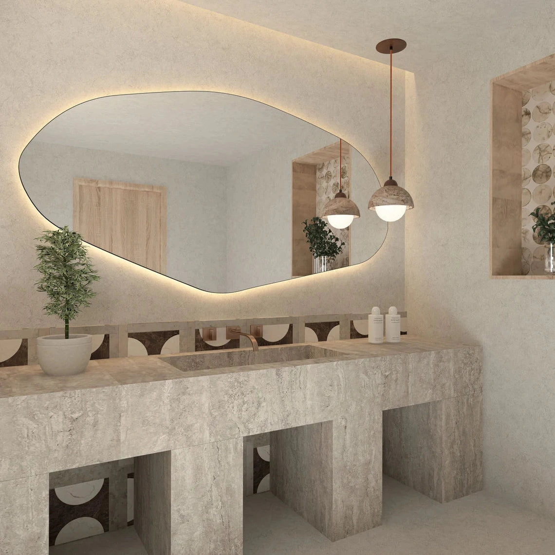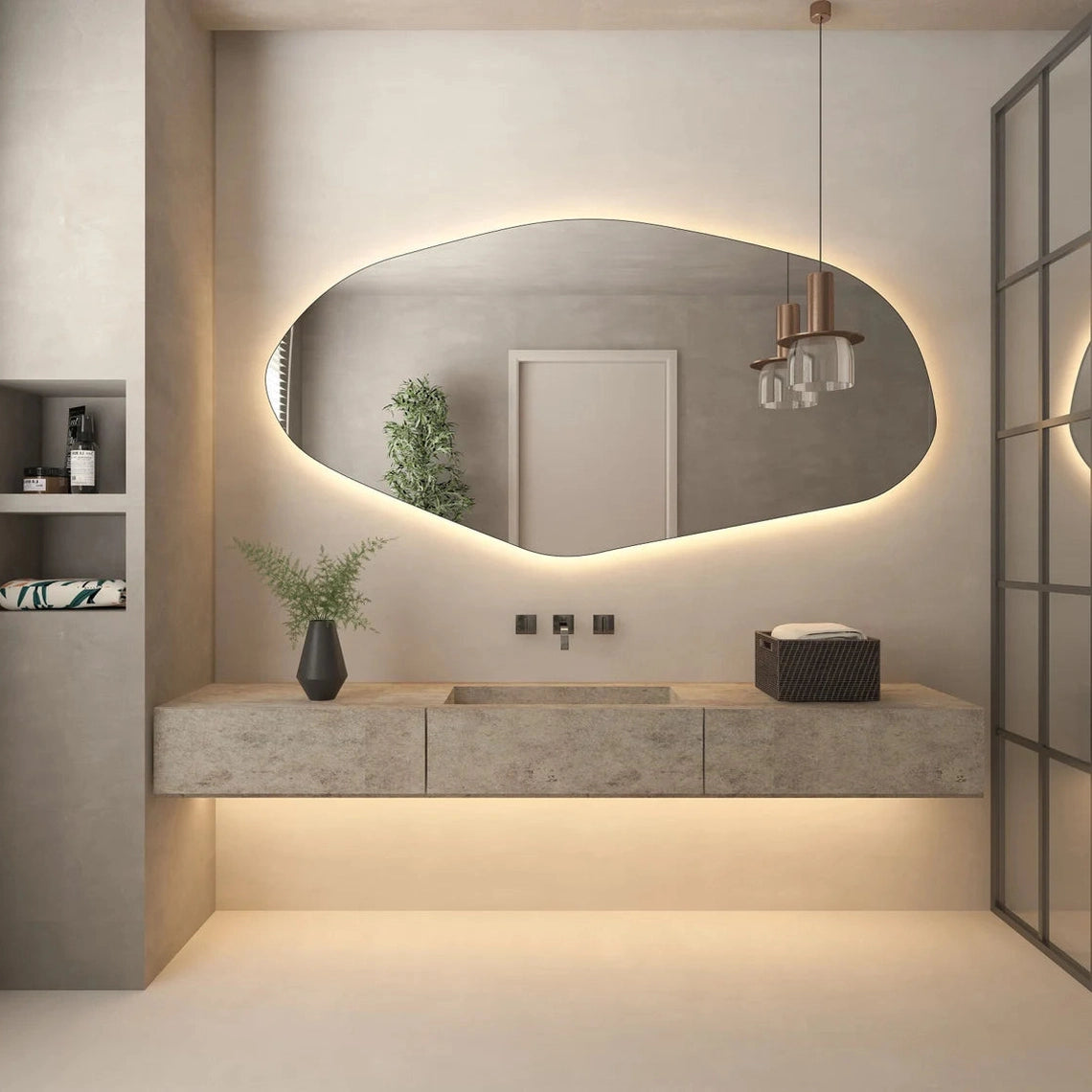 Elevate your home with the LED abstract mirror, designed to bring a futuristic and stylish touch to your space. Featuring 3 built-in lights and a touch sensor for effortless control, this mirror is a perfect combination of modern design and practicality. Its abstract shape adds a unique visual appeal, making it a stunning centerpiece in your bathroom, bedroom, or hallway.